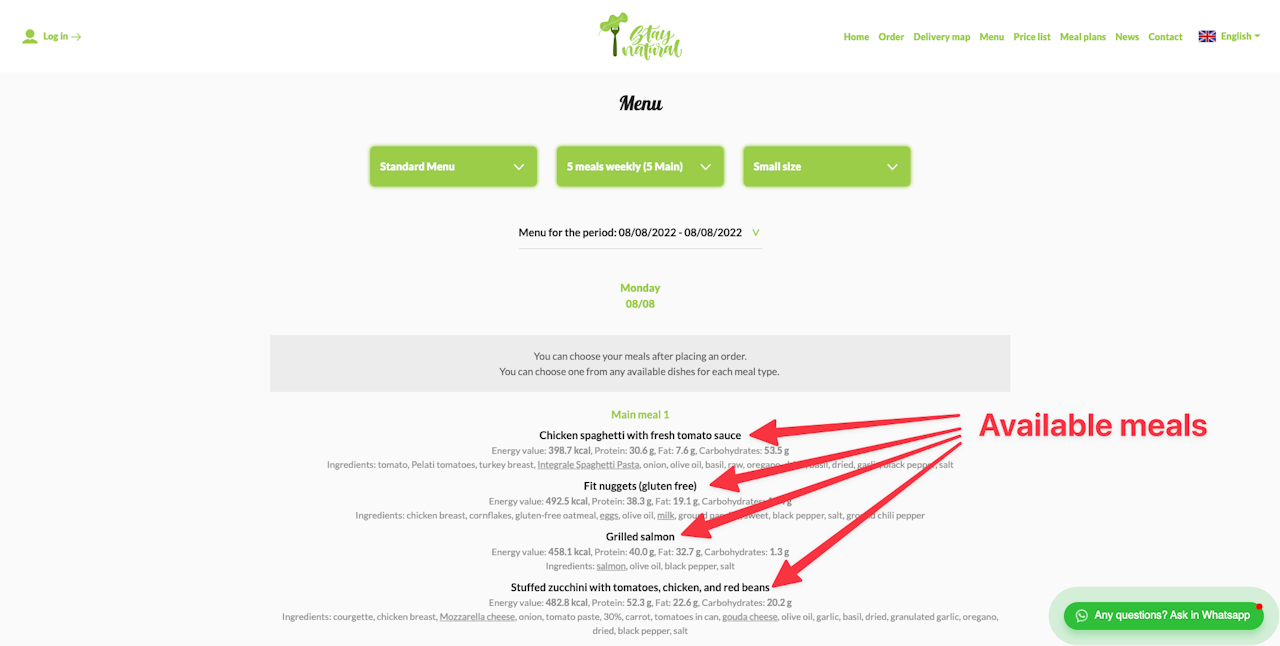 The meal prep company can give their customers the option to choose from different meal options.