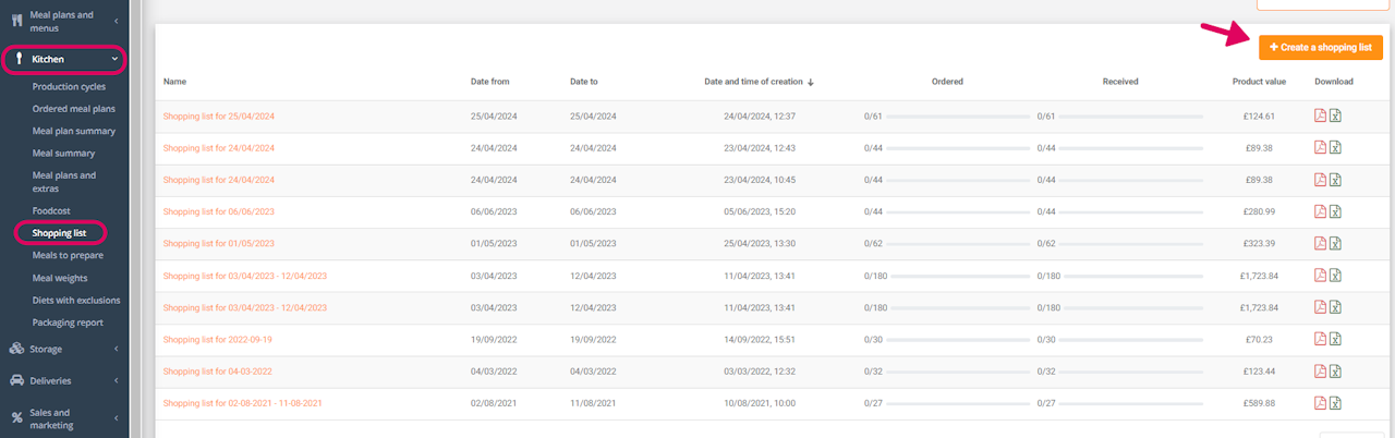 To do this, go to the 'Kitchen' tab, select 'Shopping List', and click 'Create a shopping list'.