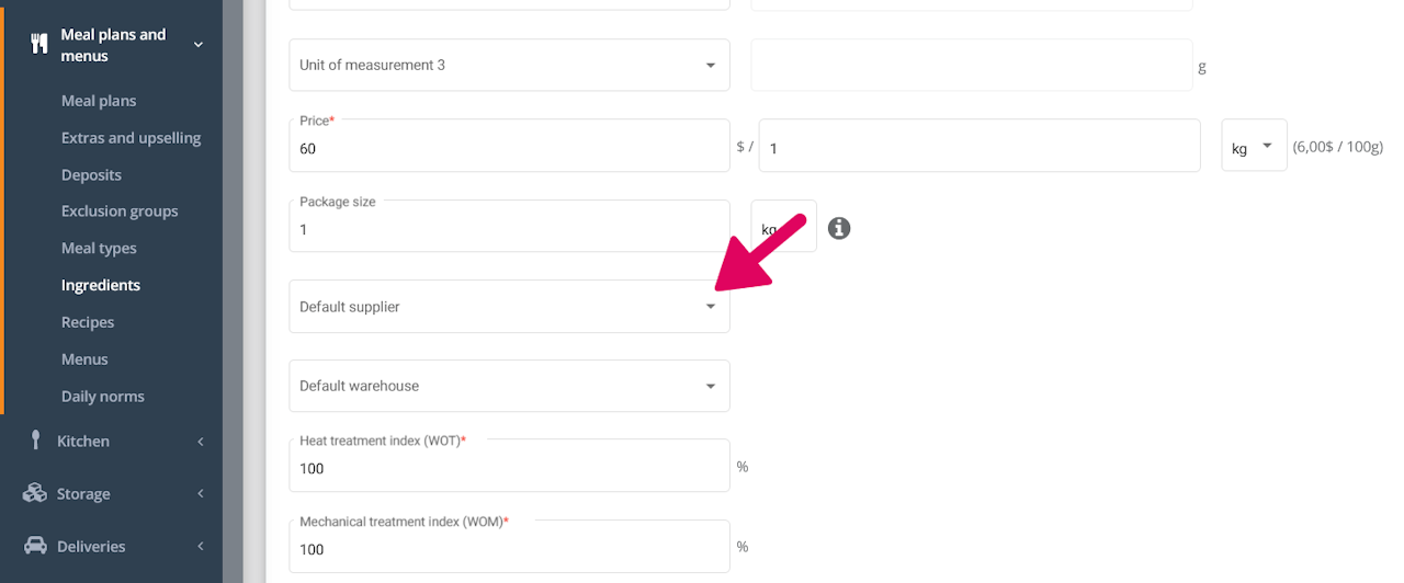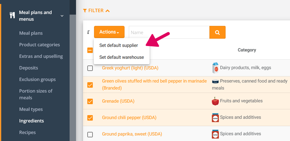 Another way to permanently assign a supplier to an ingredient is by using the 'Set default supplier' option on the shopping list.