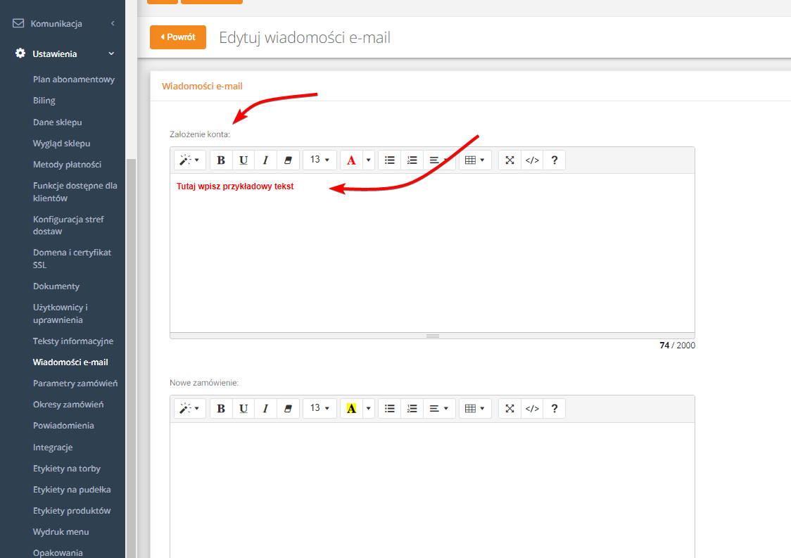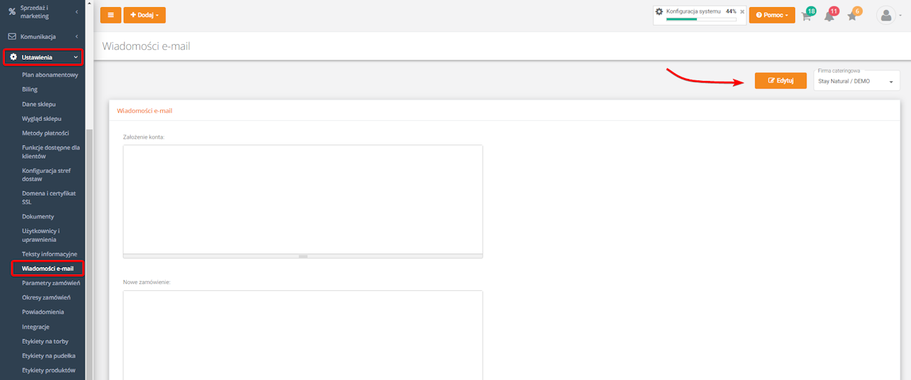 Można to zrobić w zakładce Ustawienia → Wiadomości e-mail, po przejściu w tryb edycji.