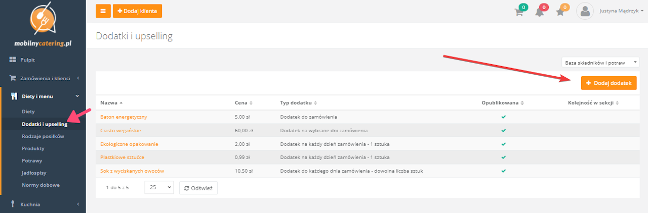 W oprogramowaniu Mobilny catering mamy możliwość zamówienia przez klienta dodatków do każdego lub wybranego zamówienia.