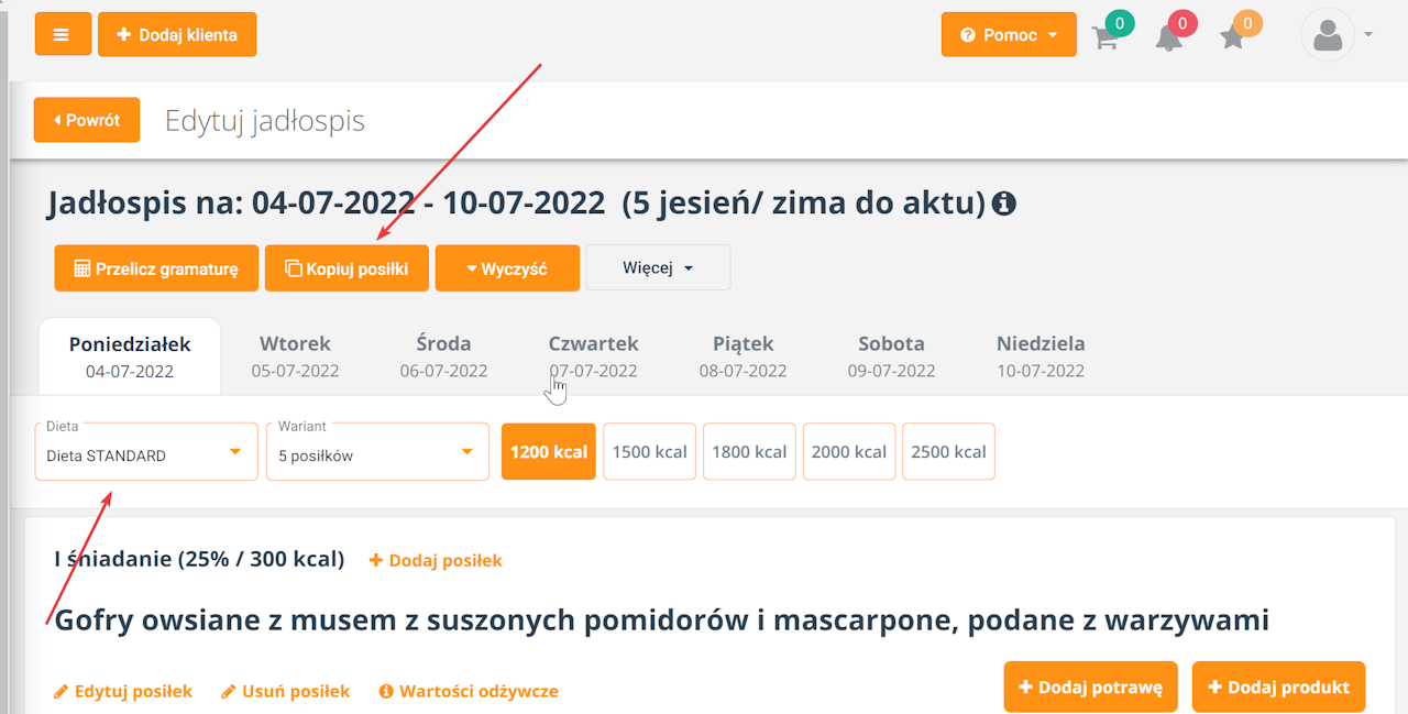 1.Kopiujemy dietę standard do diety wege