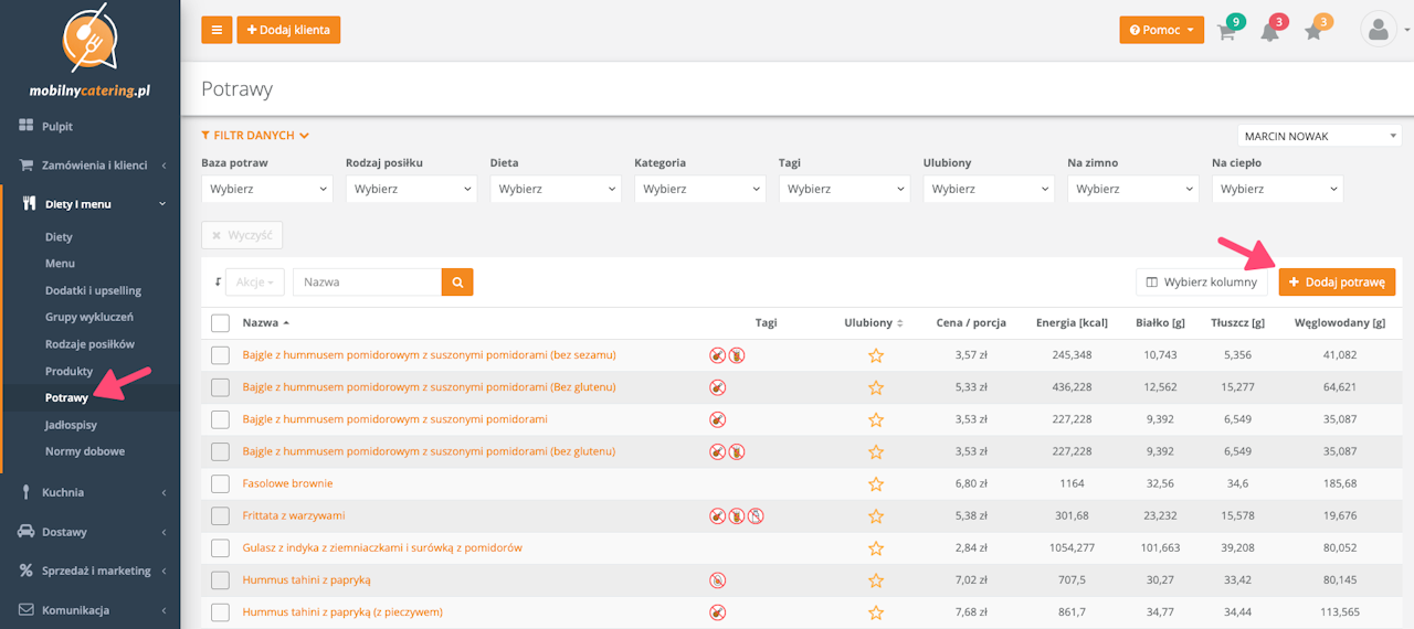 W pierwszej kolejności uzupełnij listę potraw. Informacje jak dodawać potrawy do bazy potraw znajdziesz tutaj Dodawanie nowej potrawy